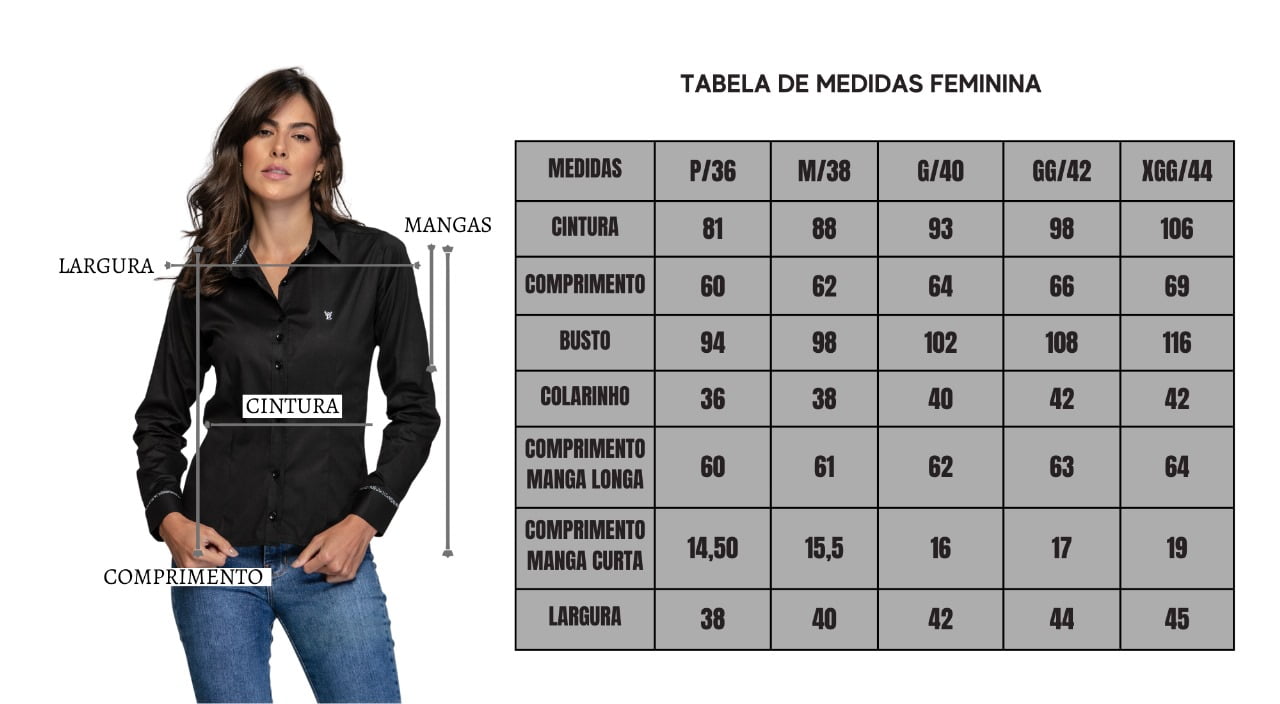 • Corte Slim Valorizador: O corte ajustado ao corpo (slim fit) realça a silhueta feminina, proporcionando um visual elegante e moderno.